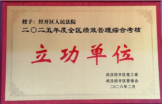 喜报!经开法院获评2025年度全区绩效管理综合考核立功单位